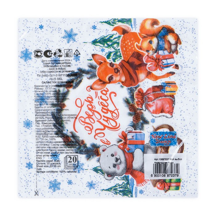 Мой выбор Набор салфеток бумажных «Новогоднее чудо»В данный момент этот товар отсутствует в продаже. Возможно, у нас найдется аналогичный или похожий товар здесь. Новогодние салфетки — идеальное сочетание стиля и уюта! Эти салфетки станут ярким акцентом на вашем праздничном столе, создавая атмосферу волшебства и радости. Разнообразие дизайнов позволит выбрать идеальный вариант для любого интерьера и настроения. Не упустите возможность сделать ваш новогодний стол ещё более уютным и стильным с новогодними салфетками! |