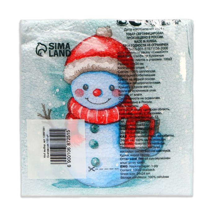 Мой выбор Набор салфеток бумажных «Снеговичок»+29 качество цвет внешний вид