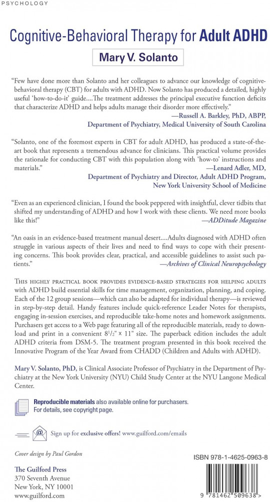 Cognitive-Behavioral Therapy for Adult ADHD: Targeting Executive DysfunctionВ данный момент этот товар отсутствует в продаже. Возможно, у нас найдется аналогичный или похожий товар здесь. This highly practical book provides evidence-based strategies for helping adults with ADHD build essential skills for time management, organization, planning, and coping. Each of the 12 group sessions—which can also be adapted for individual therapy—is reviewed in step-by-step detail. Handy features include quick-reference Leader Notes for therapists, engaging in-session exercises, and reproducible take-home notes and homework assignments. The paperback edition includes the adult ADHD criteria from DSM-5. The treatment program presented in this book received the Innovative Program of the Year Award from CHADD (Children and Adults with ADHD). |