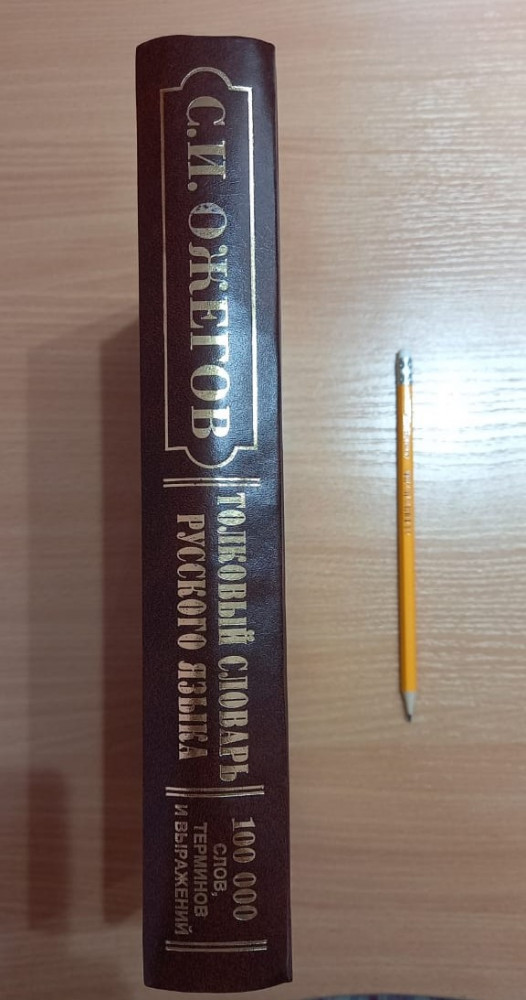 Книга большая и лёгкая, листы белые. Слов много, поэтому шрифт мелкий, но вполне читаемый. Переплёт на вид хорош, качество будет проверяться временем. Этот словарь 27 издания издательства "Мир и образование", 2020 год. Взяла книгу сыну 10 лет, так как часто спрашивает значение слов. В словаре есть и современные слова (типа "пин-код").