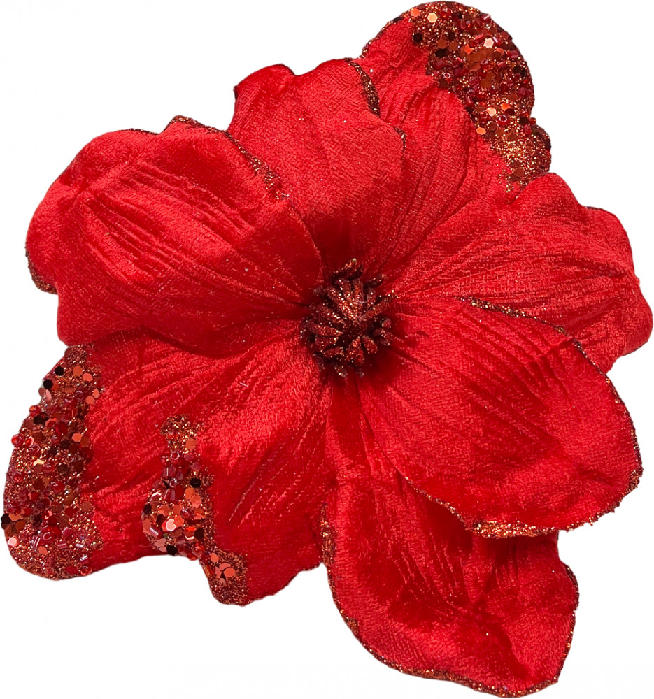 Christmas DeLuxe Украшение новогоднее на клипсе «Цветок Магнолия с блестками»