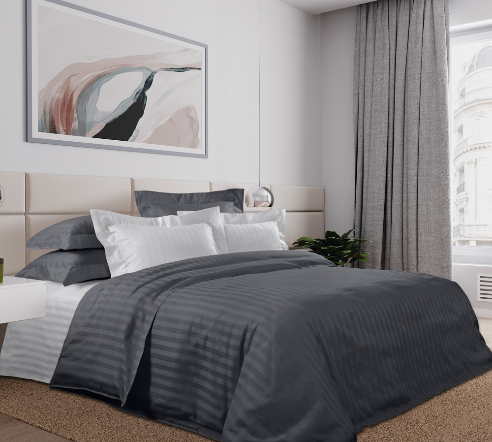 Комплект постельного белья страйп-сатин из длинноволокнистого пакистанского хлопка высокой плотности 200ТС. Сатиновое плетение придает ткани мягкость, шелковистость, эластичность и благородный блеск. Высококачественная натуральная ткань из 100% мерсеризованного хлопка отлично пропускает воздух и впитывает влагу, не вызывает аллергии и раздражения кожи, не накапливает статического электричества, хорошо драпируется и почти не мнется, можно гладить по настроению.