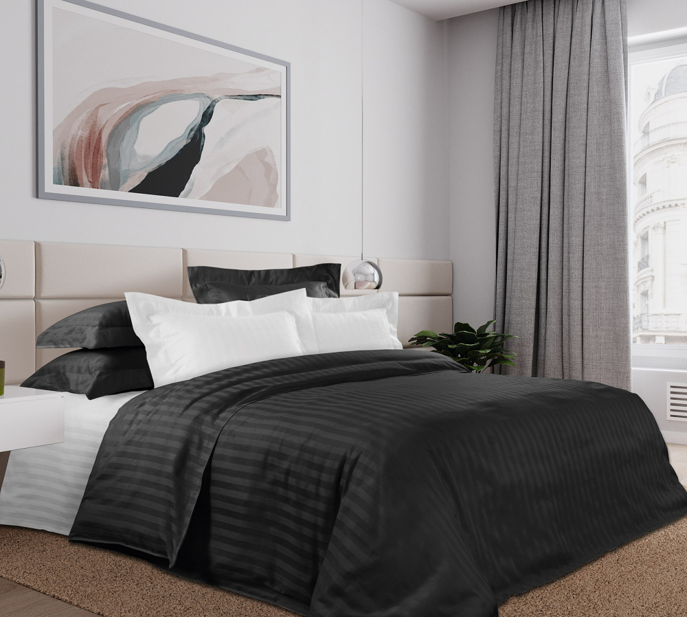 Комплект постельного белья страйп-сатин из длинноволокнистого пакистанского хлопка высокой плотности 200ТС. Сатиновое плетение придает ткани мягкость, шелковистость, эластичность и благородный блеск. Высококачественная натуральная ткань из 100% мерсеризованного хлопка отлично пропускает воздух и впитывает влагу, не вызывает аллергии и раздражения кожи, не накапливает статического электричества, хорошо драпируется и почти не мнется, можно гладить по настроению.