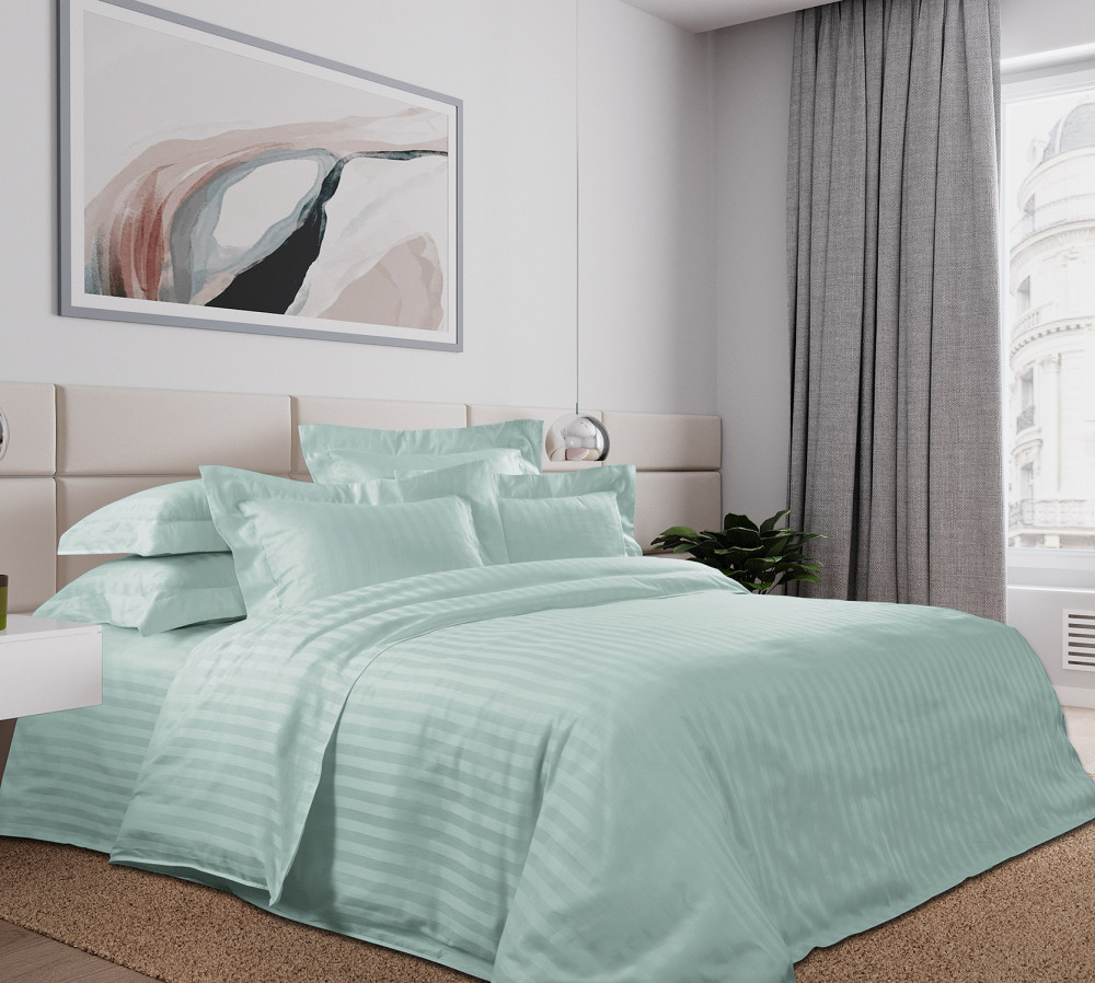 «Фирменный» признак страйпа — чередование на ткани полос матовой и блестящей фактуры. Страйп (stripe) и переводится с английского как «полоска». Такая «полосатая» структура делает страйп очень прочной и износостойкой тканью, которую можно стирать даже при высоких температурах. По ощущениям страйп самый теплый из всех видов ткани, а всё из-за сложного переплетения: ткань удерживает воздух и сохраняет тепло, выделяемое телом во время сна.