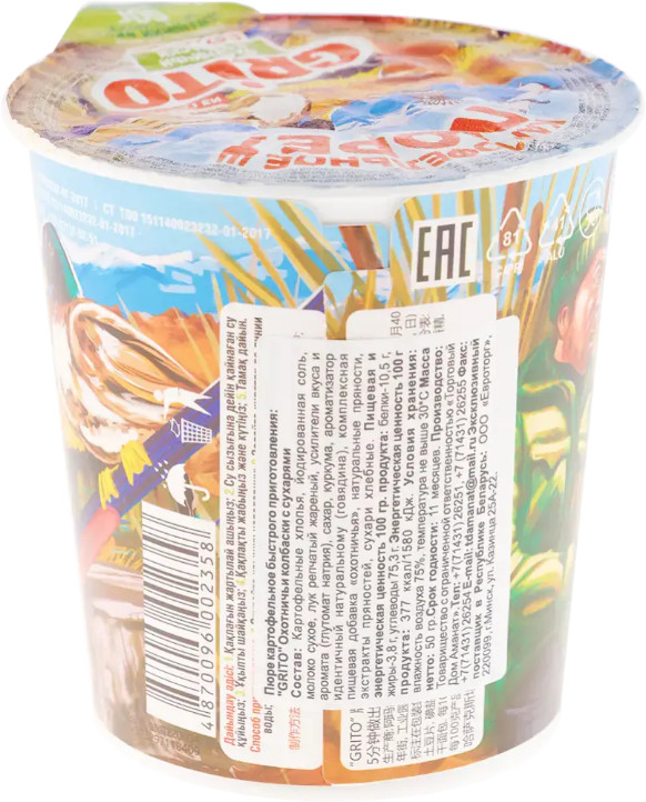 Grito Пюре картофельное «Охотничьи колбаски из говядины с сухарями»