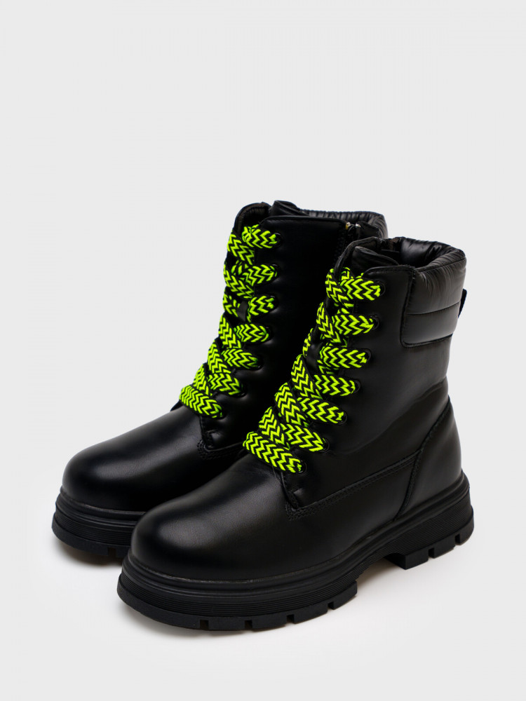 Ботинки зимние для девочки подростка. Верх обуви выполнен из искусственной принтованной кожи, обладающей высокими эксплуатационными свойствами. Подкладка и съемная стелька выполнены из из шерстяного меха 80%. Формоустойчивый задник поддерживает стопу в правильном положении. Эргономичная форма колодки обеспечивает правильное формирование стопы ребенка. Модель имеет широкие цветные шнурки и молнию изнутри. Высокая подошва из терморезины имеет глубокий протектор, не скользит и устойчива к истиранию. Рекомендованный температурный режим (зависит от активности ребенка и поддевы под обувь) от +0°С до −10°С.