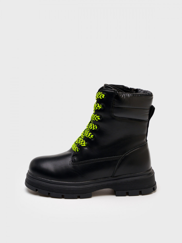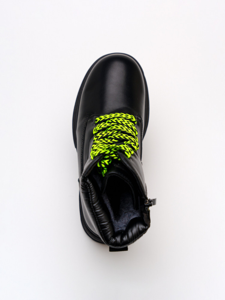 Ботинки зимние для девочки подростка. Верх обуви выполнен из искусственной принтованной кожи, обладающей высокими эксплуатационными свойствами. Подкладка и съемная стелька выполнены из из шерстяного меха 80%. Формоустойчивый задник поддерживает стопу в правильном положении. Эргономичная форма колодки обеспечивает правильное формирование стопы ребенка. Модель имеет широкие цветные шнурки и молнию изнутри. Высокая подошва из терморезины имеет глубокий протектор, не скользит и устойчива к истиранию. Рекомендованный температурный режим (зависит от активности ребенка и поддевы под обувь) от +0°С до −10°С.