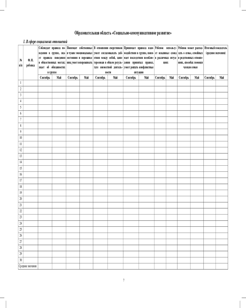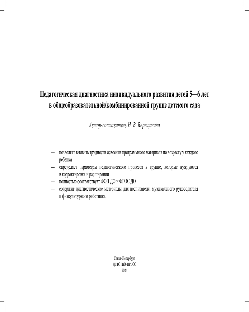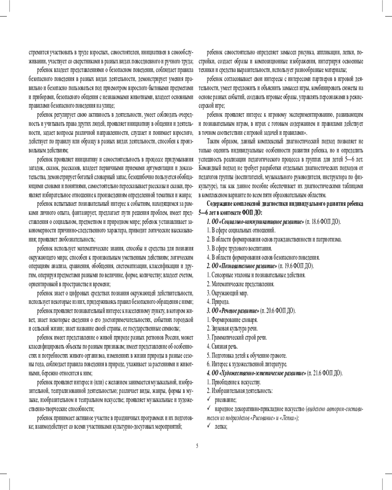 Педагогическая диагностика индивидуального развития детей 5-6 лет в общеобразовательной/комбинированной группе детского сада-25% +15