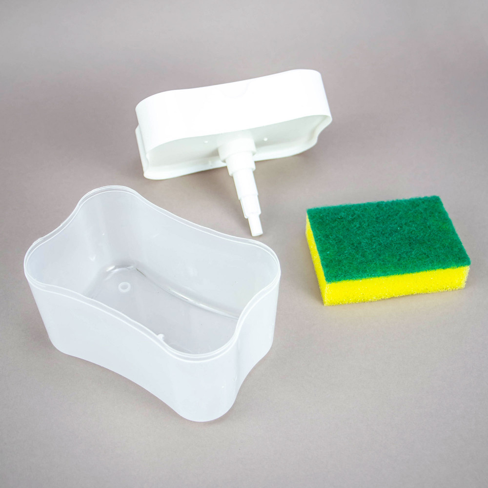 Дозатор для мытья посуды с губкой в комплекте — идеальный органайзер для кухни и подставка для моющего средства и губки, сэкономит место у вашей мойки и раковины. Кухонный диспенсер сделает мытье посуды комфортным и быстрым с использованием различных жидких моющих средств для посуды. Оптимальная дозировка позволит сэкономить на расходе моющего средства для посуды. Современный стиль дозатора для моющих жидкостей украсит любую кухню. Ваша губка не будет оставлять мыльные подтеки на мойке и кухонном гарнитуре, а удобно разместится на подставке для губки, обеспечив порядок на кухне. Качество abs пластика нашего дозатора на высоте, поэтому он прослужит Вам очень долго. Диспенсер для моющего средства — это ваш лучший выбор для мытья посуды, декора и удобства!