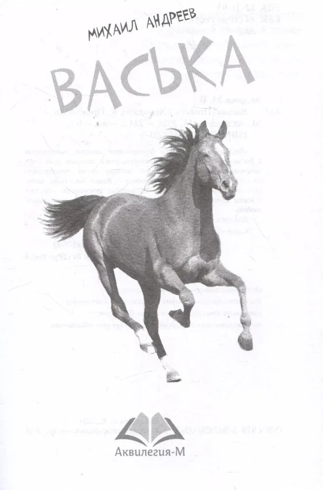 «Васька» — повесть о беспородной лошади, написанная с большой теплотой и профессиональным знанием этих удивительных животных. История лошади тесно переплетается с судьбой главного героя повести — Вовки Васильева, который несмотря на серьёзные жизненные испытания, обретает в конце концов не только четвероногого друга, но и настоящую любовь. Для среднего и старшего школьного возраста. |