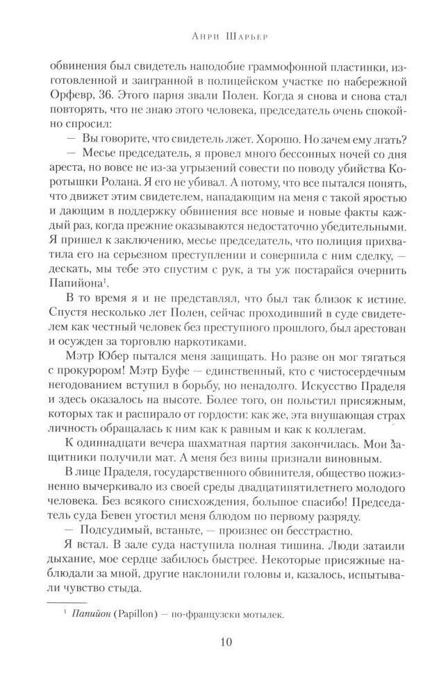Странно, но я не поверила Анри Шарьеру. И тут дело не в недостатке писательского таланта, а скорее в какой-то преувеличенности многих событий, а также скорости смены декораций. Когда я читала "Поймай меня, если сможешь" Абигнейла, я была покорена и всецело верила написанному. А вот тут не получилось поверить. Не хватило убедительности в словах. Кстати, после публикации, многие критики и журналисты поставили также под сомнение изложенное, аргументируя даже многими фактами, в которые я не углублялась. В целом. Книга достойна внимания. Особенно любителям острого сюжета, не перегруженного глубокими философскими размышлениями, как "Шантарам", к примеру.