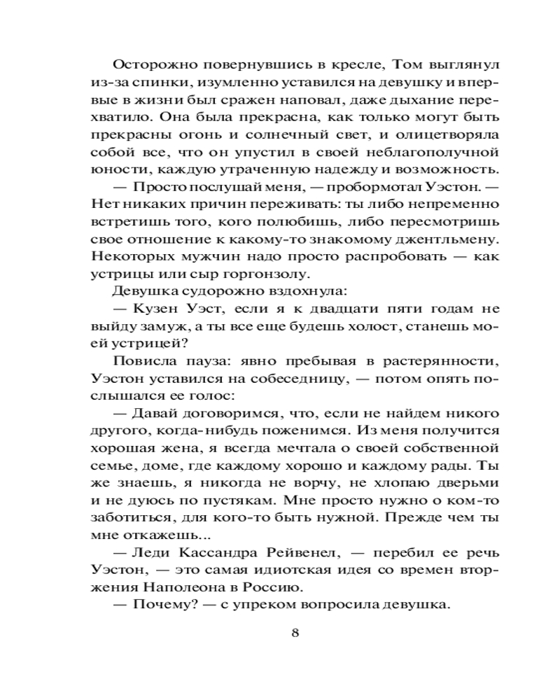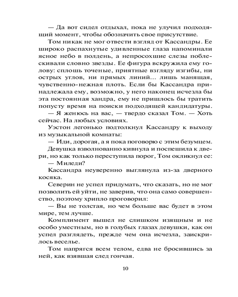 💳 Оплатить за товар можно при получении 🇰🇿 Есть бесплатная доставка по Казахстану от 1 дня 🎁 Копите бонусы с каждой покупки Серия: Бриджертоны и другие С железнодорожным магнатом Томом Северином, одним из богатейших и влиятельнейших людей Англии, сочла бы за честь породниться любая ари-стократическая семья. Но девушка, которая нужна ему, — прекрасная гордячка Кассандра, леди Рейвенел — упорно отвергает все его ухаживания. Ей нужны нежность и романтика — то единственное, на что приземленный про-мышленник Том просто не способен. |