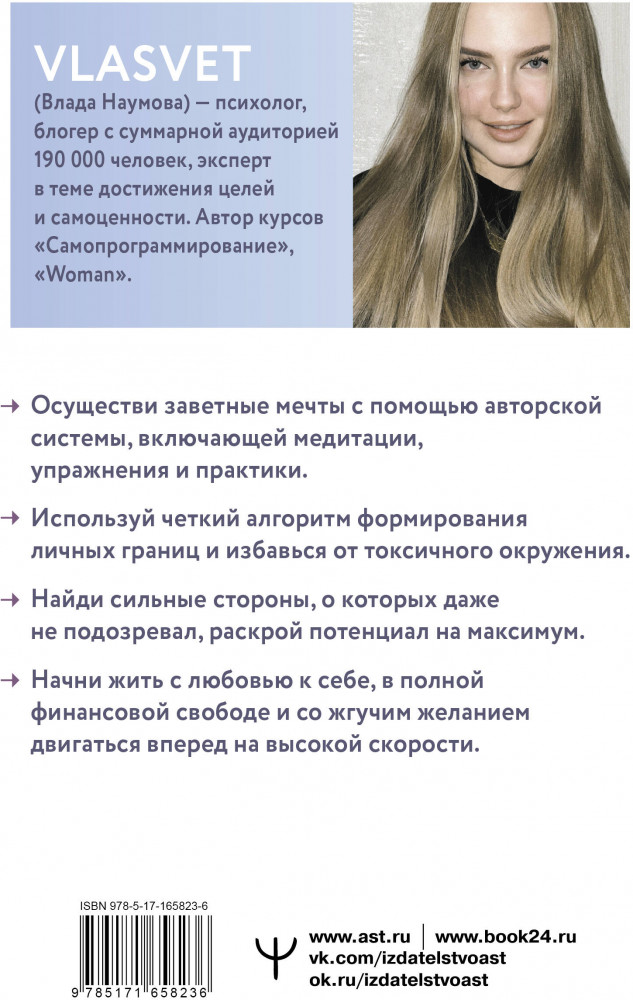 💳 Оплатить за товар можно при получении 🇰🇿 Есть бесплатная доставка по Казахстану от 1 дня 🎁 Копите бонусы с каждой покупки Серия: Psychology#KnowHow VLASVET (Влада Наумова) — психолог, блогер с суммарной аудиторией 190 000 человек, эксперт в теме достижения целей и самоценности. |