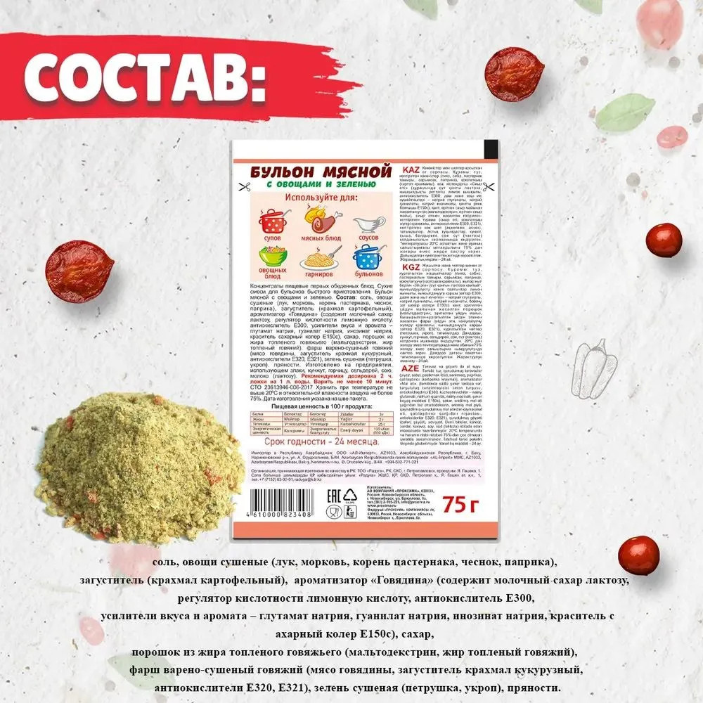 | Компания «Проксима» — это деятельность, направленная на маркетинговые исследования и производство продуктов питания, помогающая людям подчеркивать вкус любимых кушаний, получать новые впечатления и удовольствие от приготовления блюд по новым рецептам, знакомиться с традициями, культурой, и великолепной кухней разных народов мира. Компания «Проксима» сегодня одна из крупнейших компаний по объемам производства и продаж на рынке приправ, специй, супов быстрого приготовления, пряностей и... |