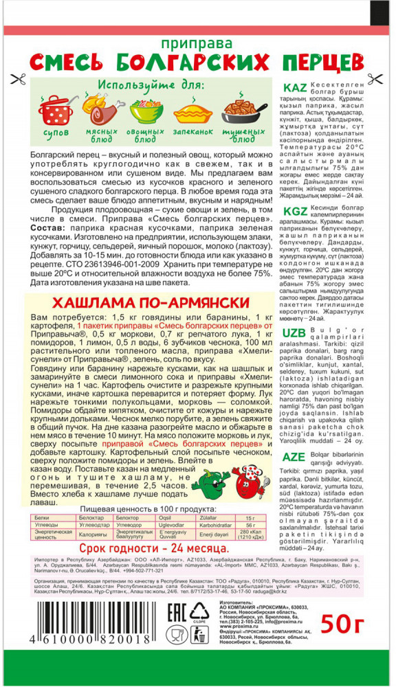 | Компания «Проксима» — это деятельность, направленная на маркетинговые исследования и производство продуктов питания, помогающая людям подчеркивать вкус любимых кушаний, получать новые впечатления и удовольствие от приготовления блюд по новым рецептам, знакомиться с традициями, культурой, и великолепной кухней разных народов мира. Компания «Проксима» сегодня одна из крупнейших компаний по объемам производства и продаж на рынке приправ, специй, супов быстрого приготовления, пряностей и... |