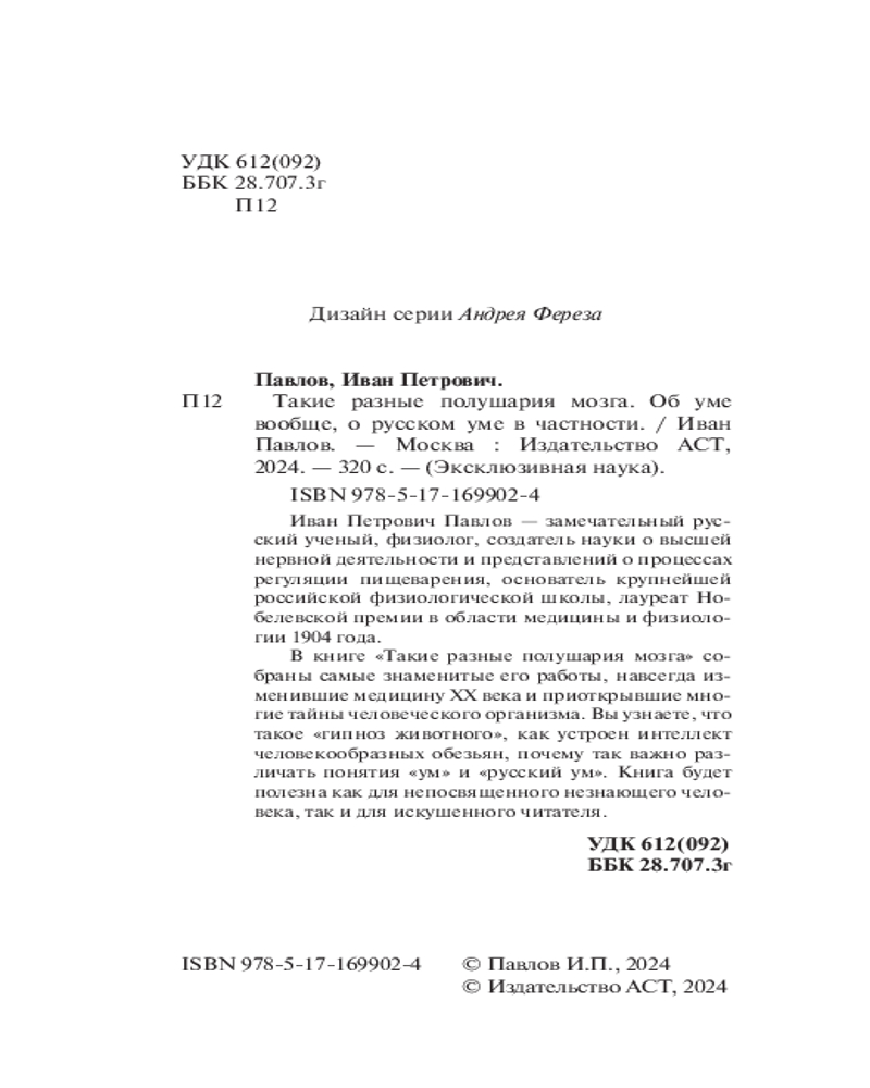 💳 Оплатить за товар можно при получении 🇰🇿 Есть бесплатная доставка по Казахстану от 1 дня 🎁 Копите бонусы с каждой покупки Серия: Эксклюзивная наука Иван Петрович Павлов — замечательный русский ученый, физиолог, создатель науки о высшей нервной деятельности и представлений о процессах регуляции пищеварения, основатель крупнейшей российской физиологической школы, лауреат Нобелевской премии в области медицины и физиологии 1904 года. |