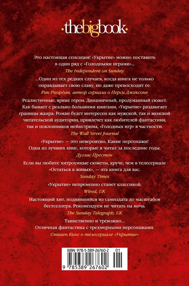 💳 Оплатить за товар можно при получении 🇰🇿 Есть бесплатная доставка по Казахстану от 1 дня 🎁 Копите бонусы с каждой покупки Серия: The Big Book «Иллюзия», первая книга трилогии, представила читателям мир, созданный из подземных укрытий, и атмосферу в них. Вторая, «Смена», рассказала историю создания этих сооружений. «Пыль», книга, завершающая трилогию, расскажет об их падении. Чтобы начался новый мир, старый мир должен пасть. Джульетта, ныне мэр Восемнадцатого укрытия, не доверяет Первому укрытию, откуда ведется управление остальными. Особо ей ненавистен руководитель Первого Дональд. Но в мире, который состоит из укрытий, нет черного и белого — все здесь в оттенках серого. И возможно, Дональд не страшное бессердечное чудовище, каким его представляет Джульетта, а тот самый счастливый шанс на пути к выживанию человечества. В мае 2023 года состоялась премьера первого сезона телесериала «Укрытие», снятого по роману Хауи (режиссеры Адам Бернштейн и Мортен Тильдум по сценарию Грэма Йоста). Сериал пользовался огромной популярностью, получил высокие рейтинги и уже продлен на второй и третий сезоны. Впервые на русском языке! |