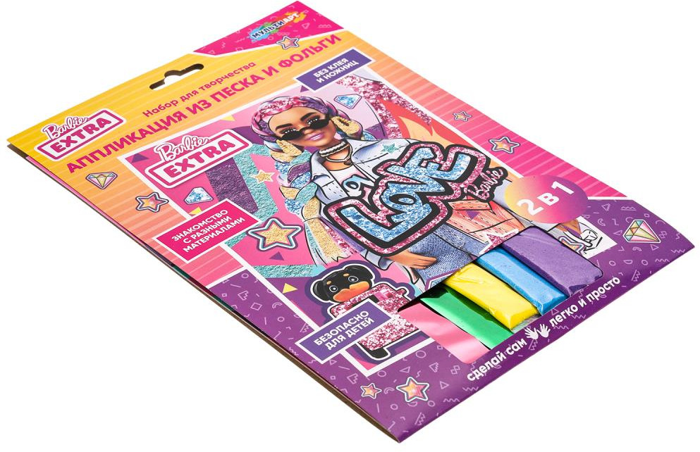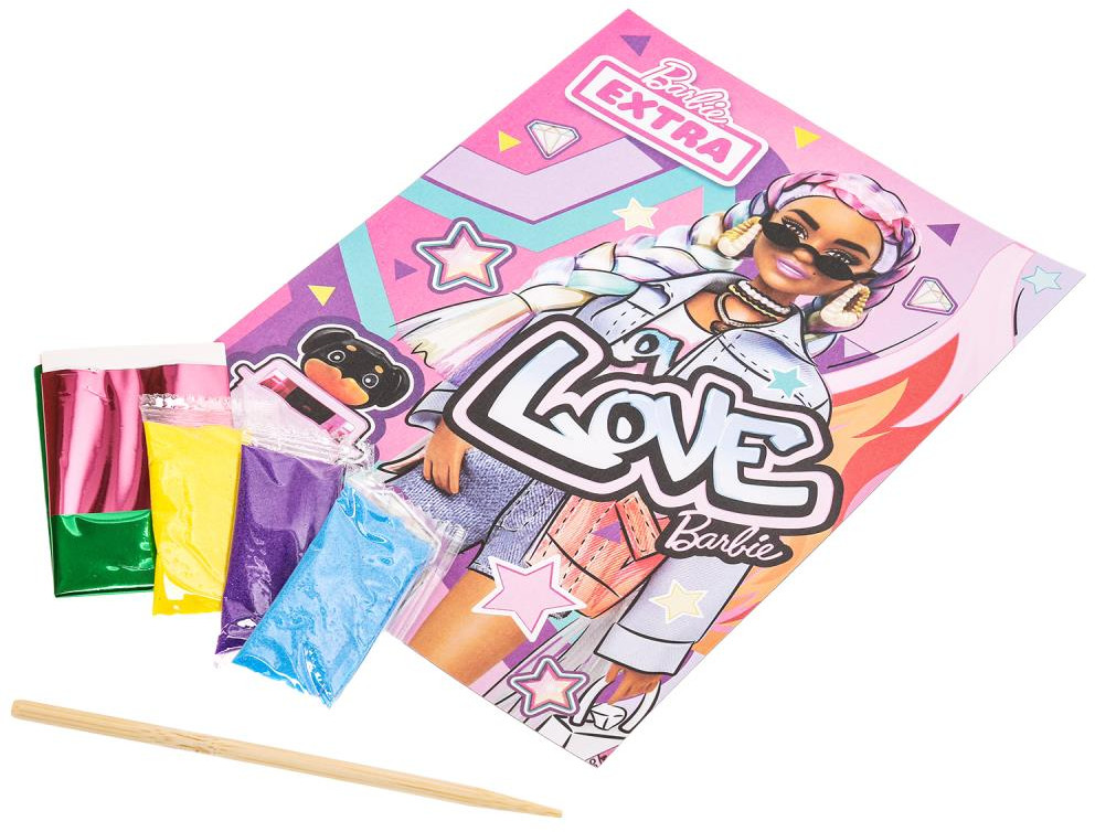 Набор для творчества 2 в 1 — аппликация из песка и фольги «Барби Extra» ТМ «Мульти Арт» — отличный подарок для ребёнка, который будет способствовать развитию его творческих способностей. |