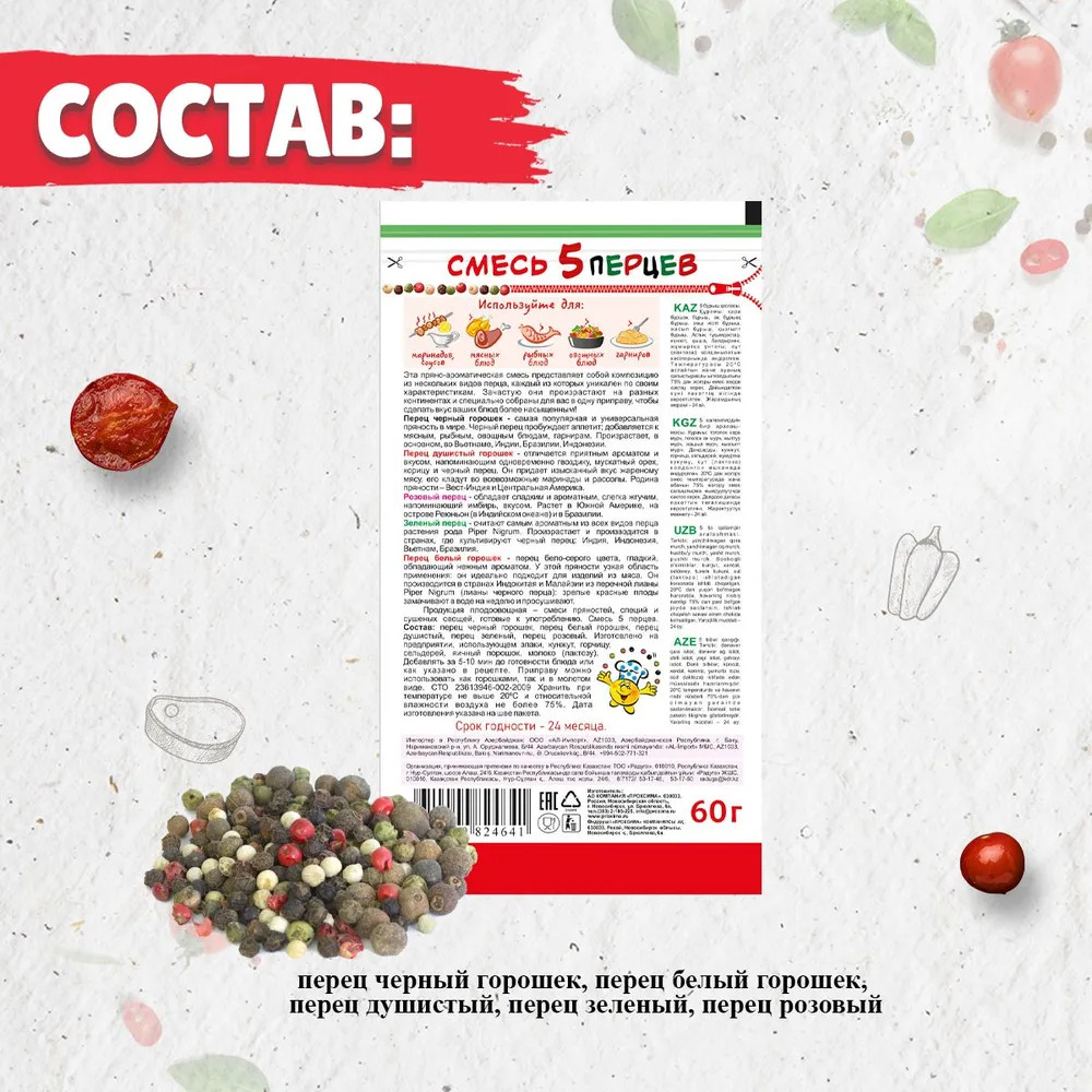 Приправыч Приправа «Смесь 5 перцев (горошком)»