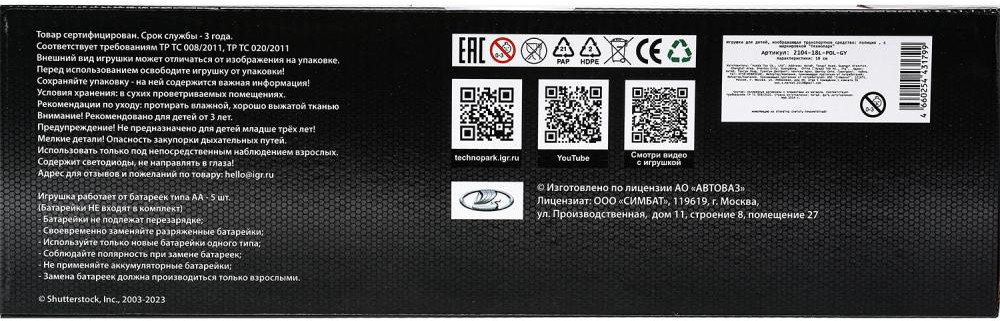 Технопарк Модель радиоуправляемая «ВАЗ-2104 Полиция»