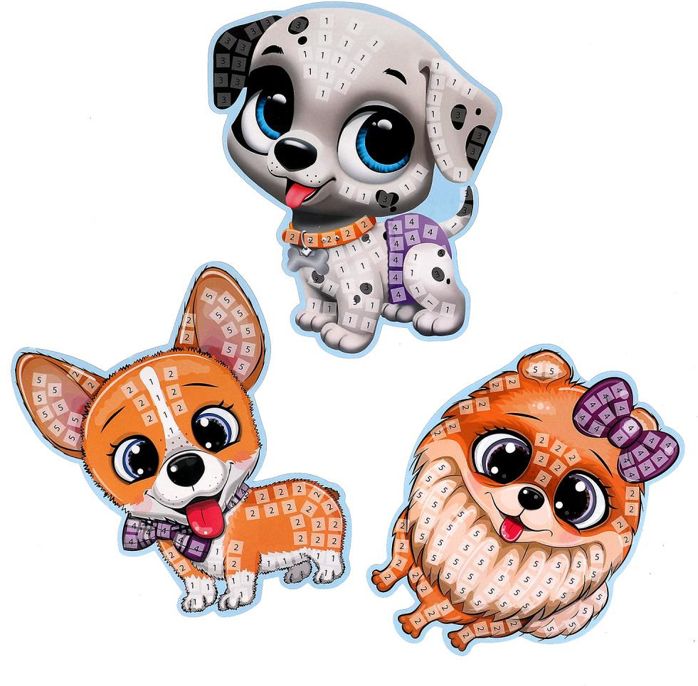 С помощью красочной основы и разноцветных деталей из мягкого материала маленькая художница сможет самостоятельно создать несколько фигурных аппликаций в виде очень милых собачек разных пород. Готовая поделка станет отличным вариантом для подарка близким или для украшения детской комнаты.