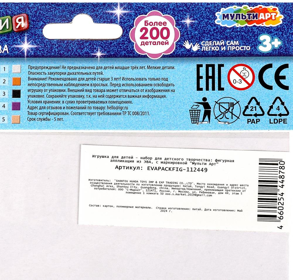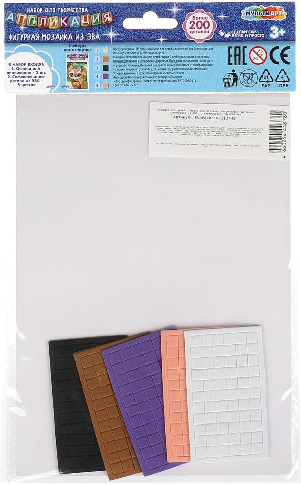 Набор для творчества — фигурная мозаика из ЭВА «Пёсики» ТМ «Мульти Арт» — отличный подарок для ребёнка, который будет способствовать развитию его творческих способностей.