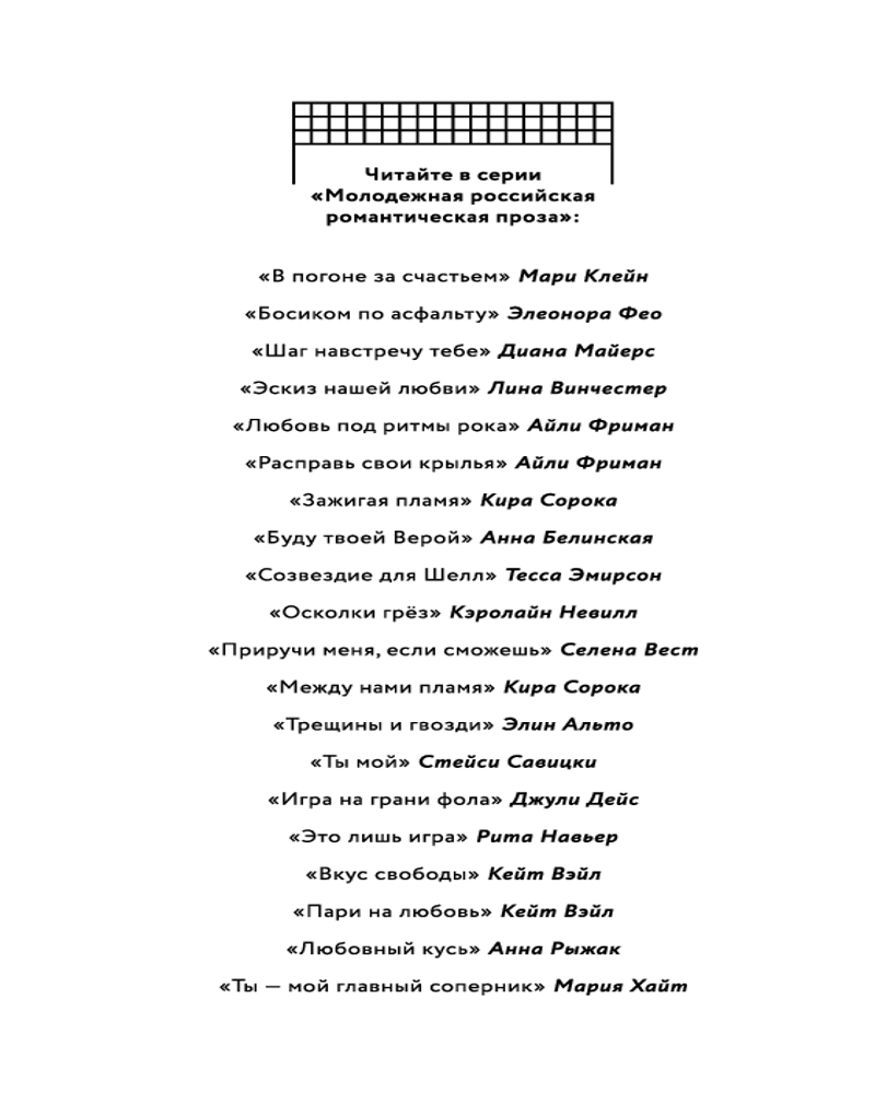 💳 Оплатить за товар можно при получении 🇰🇿 Есть бесплатная доставка по Казахстану от 1 дня 🎁 Копите бонусы с каждой покупки Серия: Young Adult. Молодежная российская романтическая проза Молодежная спортивная романтика! Одиночный роман для тех, кто устал от хоккея и хочет попробовать что-то новое в спорт-романтике! Волейбол окунет вас в атмосферу школьных лет! |