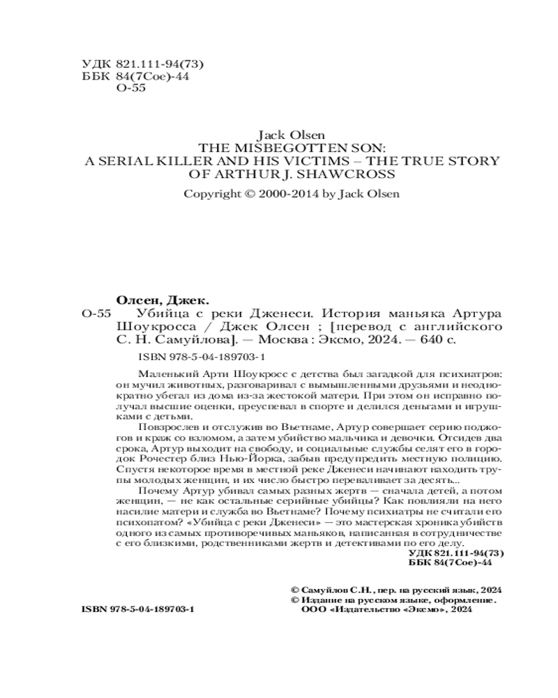 | Убийца с реки Дженеси. История маньяка Артура Шоукросса Джек Олсен +194 (бонуса)