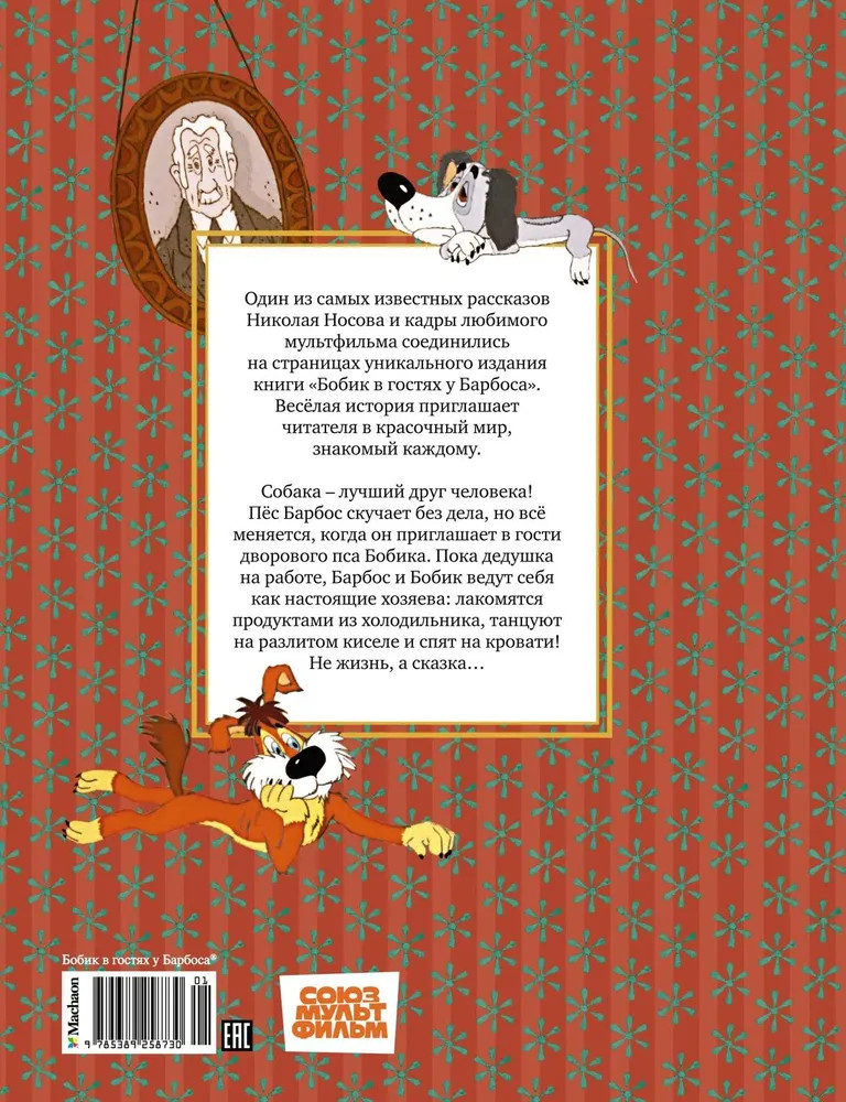 💳 Оплатить за товар можно при получении 🇰🇿 Есть бесплатная доставка по Казахстану от 1 дня 🎁 Копите бонусы с каждой покупки Один из самых известных рассказов Николая Носова и кадры любимого мультфильма соединились на страницах уникального издания книги «Бобик в гостях у Барбоса». Весёлая история приглашает читателя в красочный мир, знакомый каждому. Собака — лучший друг человека! Пёс Барбос скучает без дела, но всё меняется, когда он приглашает в гости дворового пса Бобика. Пока дедушка на работе, Барбос и Бобик ведут себя как настоящие хозяева: лакомятся продуктами из холодильника, танцуют на разлитом киселе и спят на кровати! Не жизнь, а сказка... |