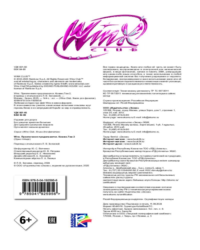 💳 Оплатить за товар можно при получении 🇰🇿 Есть бесплатная доставка по Казахстану от 1 дня 🎁 Копите бонусы с каждой покупки Серия: Winx Club. Книги для фанатов Отправьтесь вместе с Винкс в захватывающее путешествие, где им придется использовать новые заклинания и умения, чтобы победить злодеев и защитить свой мир. |