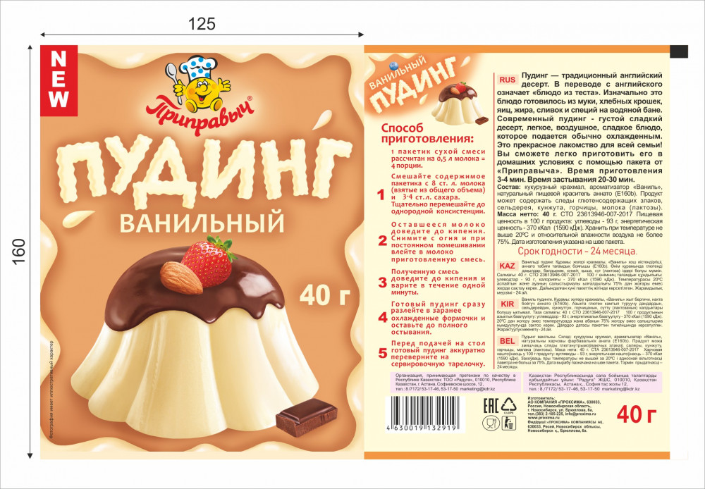 | Компания «Проксима» — это деятельность, направленная на маркетинговые исследования и производство продуктов питания, помогающая людям подчеркивать вкус любимых кушаний, получать новые впечатления и удовольствие от приготовления блюд по новым рецептам, знакомиться с традициями, культурой, и великолепной кухней разных народов мира. Компания «Проксима» сегодня одна из крупнейших компаний по объемам производства и продаж на рынке приправ, специй, супов быстрого приготовления, пряностей и... |