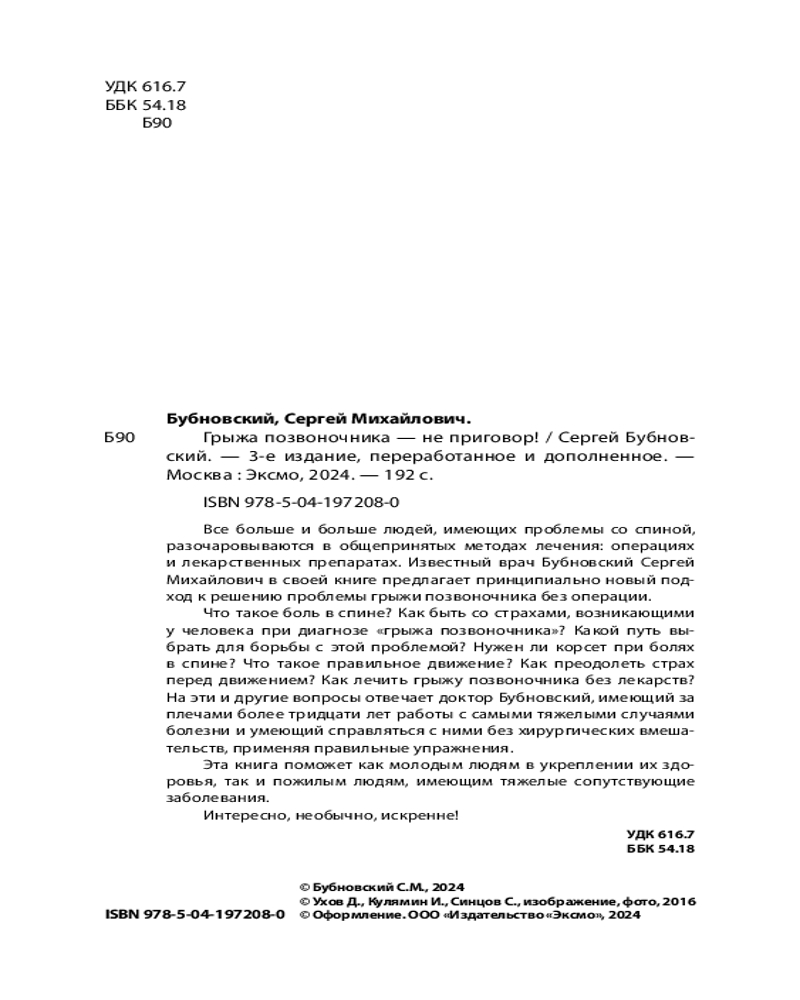💳 Оплатить за товар можно при получении 🇰🇿 Есть бесплатная доставка по Казахстану от 1 дня 🎁 Копите бонусы с каждой покупки Серия: Бестселлеры доктора Бубновского. Новое оформление Все больше и больше людей, имеющих проблемы со спиной, разочаровываются в общепринятых методах лечения: операциях и лекарственных препаратах. |