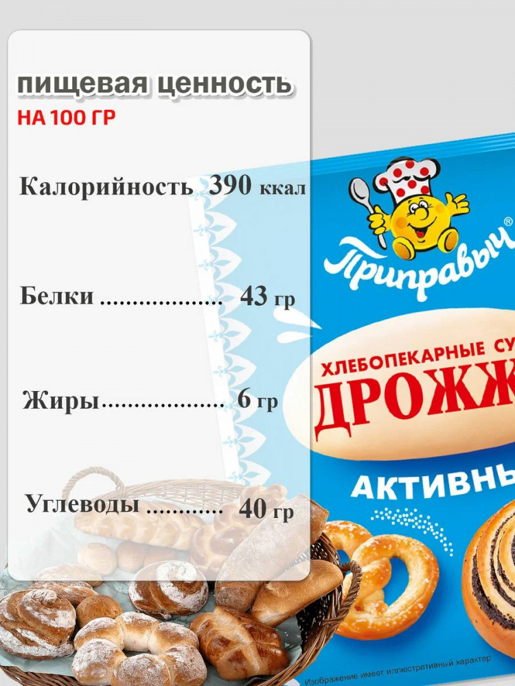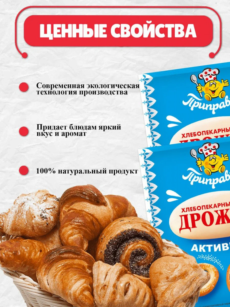 Приправыч Дрожжи хлебопекарныеВ данный момент этот товар отсутствует в продаже. Возможно, у нас найдется аналогичный или похожий товар здесь. Порадуйте вашу семью вкусной и пышной выпечкой, приготовленной с помощью пакетика дрожжей от Приправыча! |