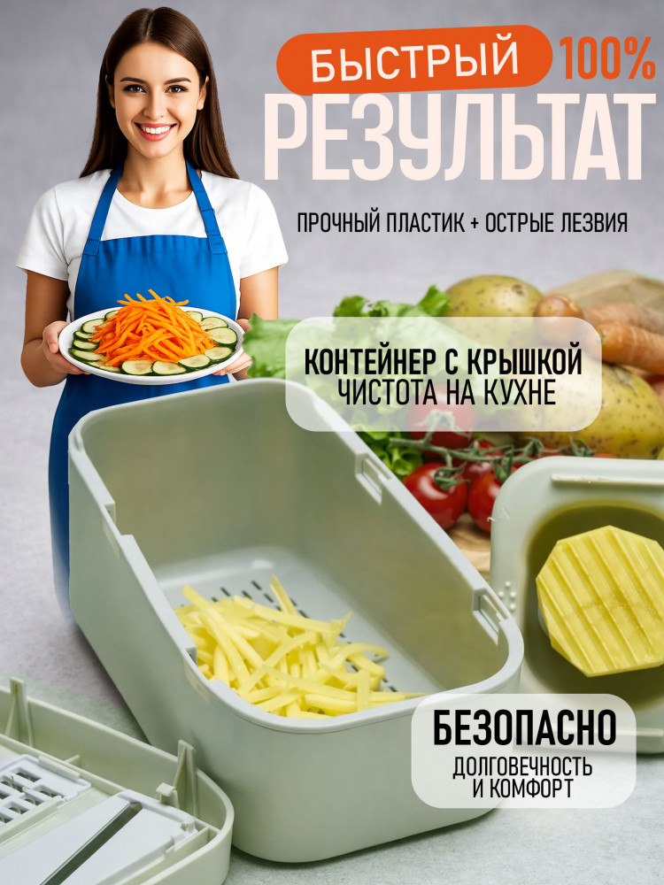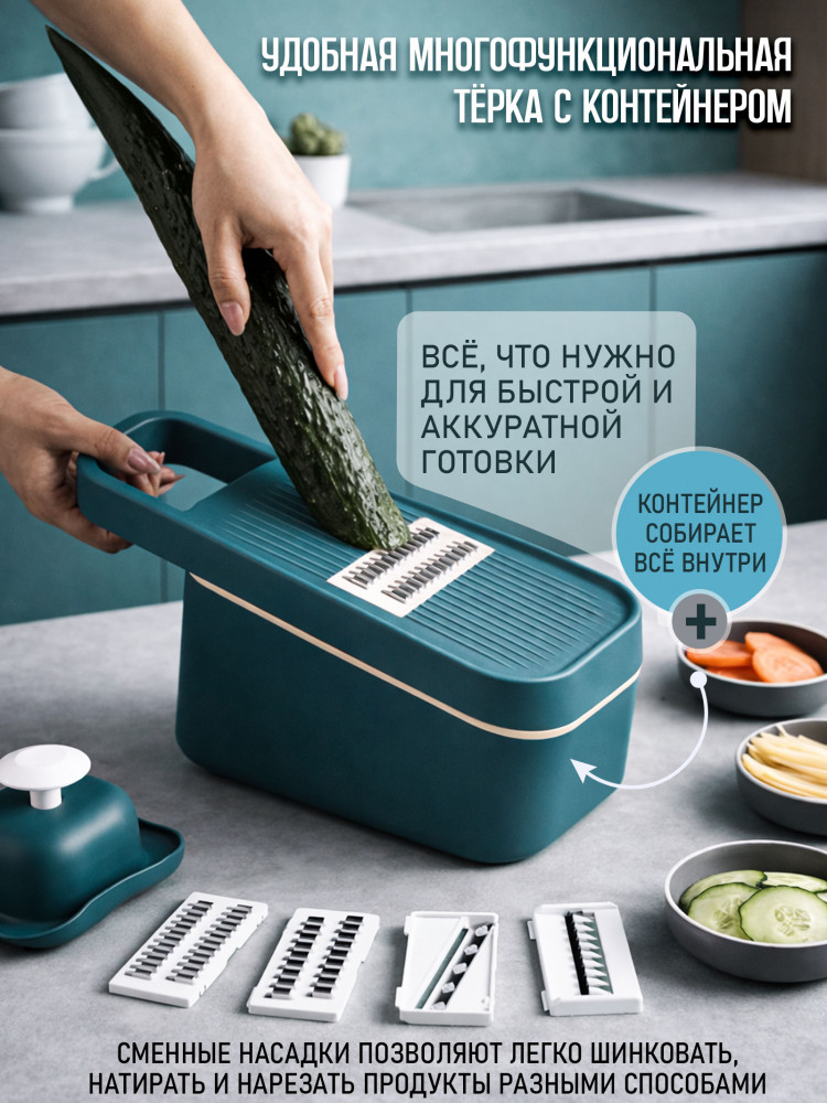 💳 Оплатить за товар можно при получении 🇰🇿 Есть бесплатная доставка по Казахстану от 1 дня 🎁 Копите бонусы с каждой покупки Терка ручная с контейнером 4 в 1 — это отличное решение по измельчению овощей и фруктов. Многофункциональная овощерезка (слайсер) с лёгкостью поможет приготовить морковь по корейски, нарезать картофель соломкой, огурцы-колечками, свеклу — рифлеными дольками. Шинковка для капусты подготовит овощные смеси и нарежет сыр аккуратными тонкими ломтиками. |