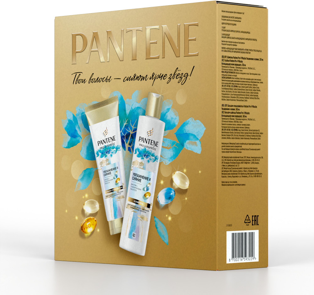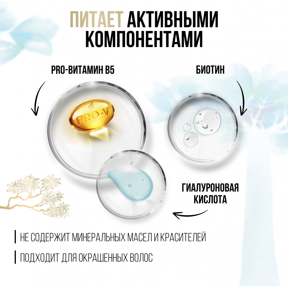 Шампунь: Aqua, Sodium Laureth Sulfate, Sodium Citrate, Cocamidopropyl Betaine, Sodium Xylenesulfonate, Stearyl Alcohol, Sodium Chloride, Parfum, Cetyl Alcohol, Citric Acid, Sodium Benzoate, Sodium Salicylate, Polyquaternium-6, Guar Hydroxypropyltrimonium Chloride, Sodium Hydroxide, Trihydroxystearin, Tetrasodium EDTA, Limonene, Panthenol, Panthenyl Ethyl Ether, Histidine, Adansonia Digitata Seed Oil, Biotin.