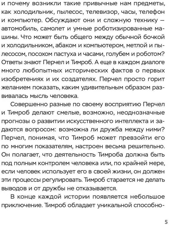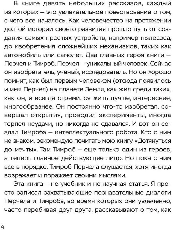 💳 Оплатить за товар можно при получении 🇰🇿 Есть бесплатная доставка по Казахстану от 1 дня 🎁 Копите бонусы с каждой покупки Серия: Imaginary Можно ли вообразить, что между человеком и искусственным интеллектом возникнут диалоги? О чем они могут говорить? В удивительных и познавательных историях, представленных в книге, есть два героя: Перчел — первый человек на Земле, ставший изобретателем и ученым, и Тимроб — первое простое устройство, впоследствии превратившееся в интеллектуального робота. Разные по своей сути Перчел и Тимроб нашли общий язык. Они увлеченно, перебивая друг друга, рассказывают о том, как и почему возникли привычные нам предметы — пылесос, телевизор и как человек на протяжении долгой истории своего развития прошел путь от создания самых простых устройств до сложнейших, таких, как автомобиль, самолет и умный робот. |