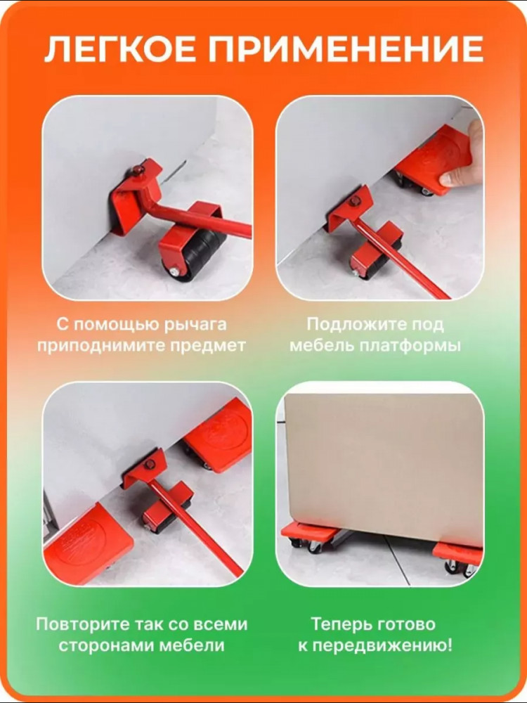 💳 Оплатить за товар можно при получении 🇰🇿 Есть бесплатная доставка по Казахстану от 1 дня 🎁 Копите бонусы с каждой покупки Набор для перемещения мебели — это уникальное приспособление, инструмент для передвижения мебели в квартире, дома или на даче. Вы облегчите себе жизнь и приложите минимум усилий с этим передвигателем мебели, чтобы в одиночку сделать перестановку и сделать Ваш дом еще уютней. Мебельный домкрат является легким, компактным и простым в использовании. |