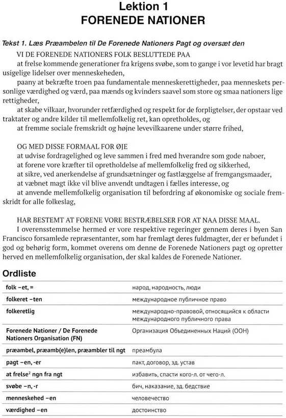 Датский язык. Общественно-политический перевод. Учебное пособие в 2 частях. Уровни В2-С1. Часть 1. ООН+220