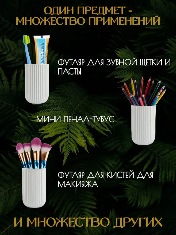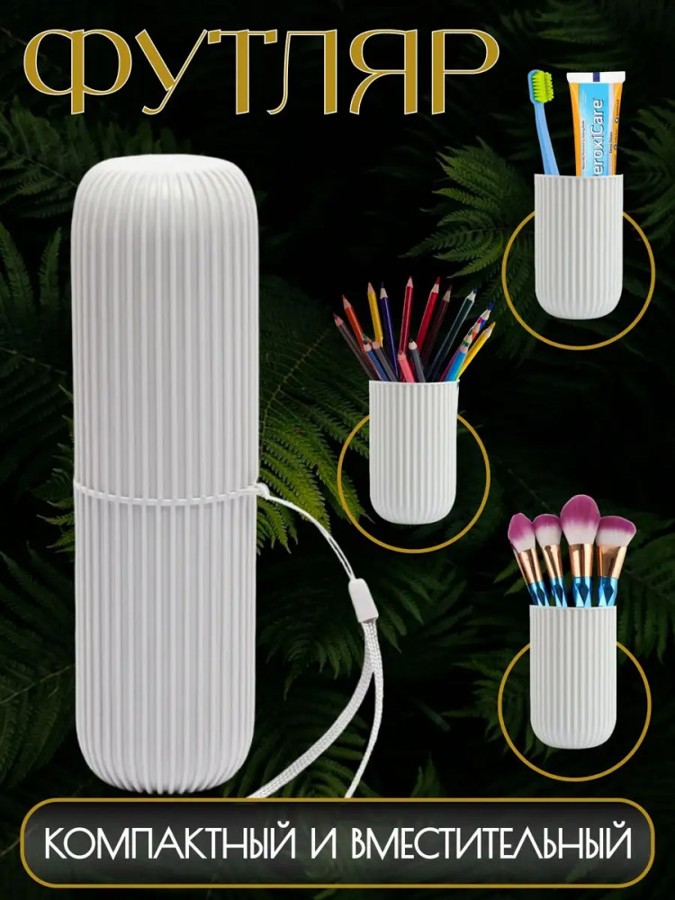 В данный момент этот товар отсутствует в продаже. Возможно, у нас найдется аналогичный или похожий товар здесь. Футляр для зубной щетки и пасты — пластиковый чехол, который одновременно является пеналом для предметов гигиены и стаканчиком для полоскания рта. Футляр тубус дорожный позволяет удобно перевозить предметы по уходу за полостью рта, чехол из пластика можно брать в путешествия, командировку, поход и на рыбалку. В гостинице или в гостях не придется использовать чужую подставку для зубной щетки, пасты и стакан для полоскания зубов.