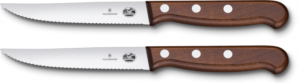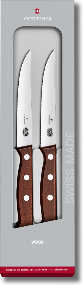 Victorinox Набор кухонных ножей Wood Steak Serrated SetВ данный момент этот товар отсутствует в продаже. Возможно, у нас найдется аналогичный или похожий товар здесь. Познакомьтесь с набором ножей, который сочетает в себе утонченную функциональность, изысканную работу и безупречную форму. Каждый предмет набора ножей для стейка и пиццы оснащен модифицированной деревянной ручкой, которая легко лежит в руке и идеально уравновешивает лезвие из нержавеющей стали, обеспечивая оптимальную устойчивость. Теплота и патина дерева, а также сверхострое лезвие сделают его трудолюбивым и элегантным дополнением к вашему столу. |