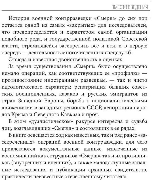 💳 Оплатить за товар можно при получении 🇰🇿 Есть бесплатная доставка по Казахстану от 1 дня 🎁 Копите бонусы с каждой покупки Военная контрразведка «Смерш». Эта аббревиатура известна каждому, кто знаком с историей Великой Отечественной войны 1941–1945 гг. Но в большинстве своем читатели (далекие от истории как науки) знают о советской военной контрразведке лишь по роману В. Богомолова «В августе 44-го» и одноименному фильму, где показан лишь один эпизод той невидимой порой для многих войны, которую «Смерш» вел против Абвера и иных спецслужб нацистской Германии. Но история «Смерш» насчитывает огромное количество как удачных операций против противника, так и неудач (поскольку германские спецслужбы нельзя было недооценивать). Офицеры «Смерша» — в большинстве своем не были профессионалами, получившими специальную подготовку, боевой и оперативный опыт им приходилось приобретать в ходе контрразведывательных операций, когда враг (в отличие от передовой линии фронта) скрывал свою «личину», используя все известные в тайном противостоянии средства и способы. И об этом — эта книга. |