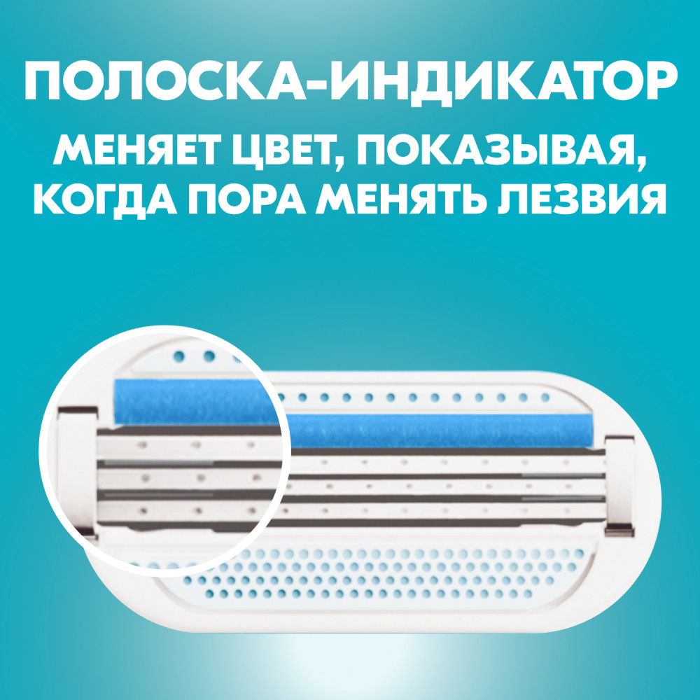 • Голубая полоска-индикатор, меняя цвет, показывает, когда пора менять лезвия;