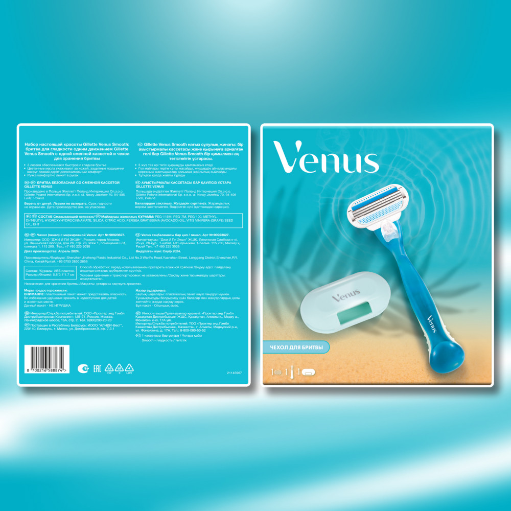 • бритва Gillette Venus Smooth с 1 сменной кассетой;