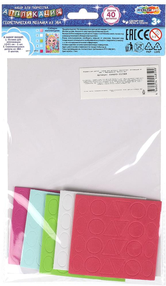 💳 Оплатить за товар можно при получении 🇰🇿 Есть бесплатная доставка по Казахстану от 1 дня 🎁 Копите бонусы с каждой покупки Набор для творчества — геометрическая мозаика из ЭВА «Пандочка» ТМ «Мульти Арт» — отличный подарок для вашего ребёнка, который будет способствовать развитию его творческих способностей. |