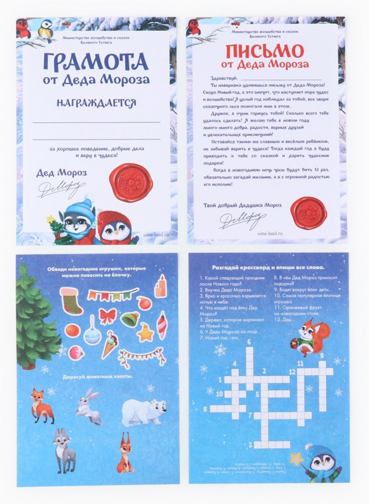 ArtFox Письмо от Деда Мороза «Новый год. Волшебная доставка»В данный момент этот товар отсутствует в продаже. Возможно, у нас найдется аналогичный или похожий товар здесь. Серия: Новый год Как Дед Мороз узнает о том, какой подарок вы мечтаете получить? Конечно, с помощью новогоднего письма! Его яркий оригинальный дизайн привлечёт внимание получателя, и он непременно исполнит ваше желание в первую очередь! Настоящий ответ от Деда Мороза можно получить только в случае, если послание будет отправлено по всем требованиям волшебной почты. Письмо нужно отправлять заранее (в начале декабря), ведь у дедушки и его преданных помощников так много работы, что они могут просто не успеть ответить всем ребятишкам вовремя. |
