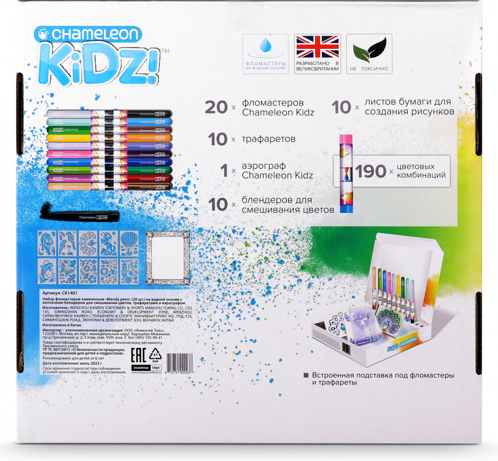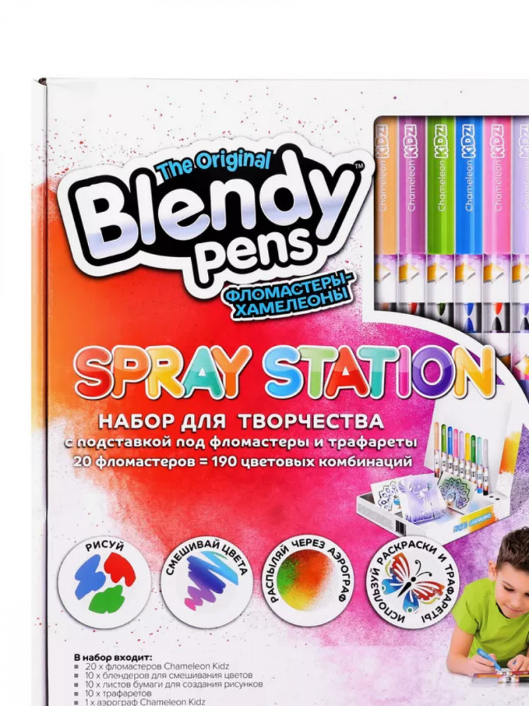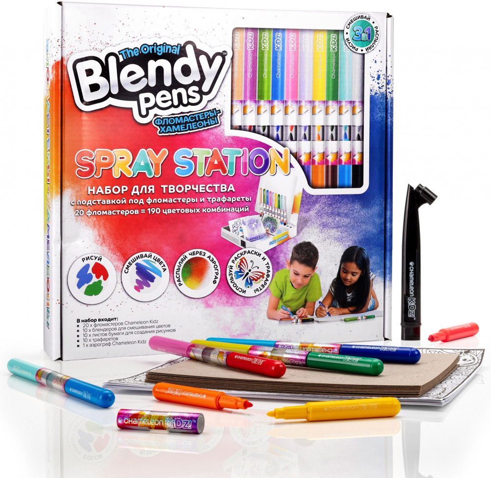 Blendy Pens Набор фломастеров-хамелеонов c трафаретами и аэрографомВ данный момент этот товар отсутствует в продаже. Возможно, у нас найдется аналогичный или похожий товар здесь. Набор фломастеров-хамелеонов «Blendy Pens» — это уникальный набор творческих инструментов, который позволяет вам создавать потрясающие произведения искусства. Эти фломастеры на водной основе имеют колпачок-блендер, который позволяет смешивать цвета и создавать новые оттенки. Просто смешайте два фломастера в колпачке-блендере, и вы получите новый уникальный цвет. Также в наборе есть аэрограф для распыления краски и создания эффекта граффити. |