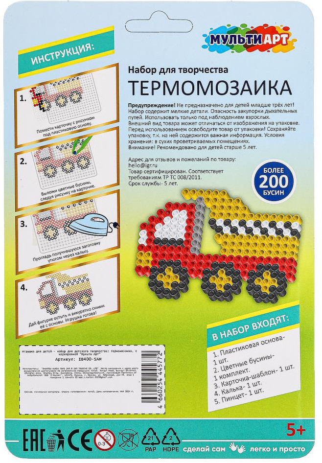 Набор для детского творчества — термомозаика «Самосвал» ТМ «Мульти Арт» — отличный подарок для ребёнка: |