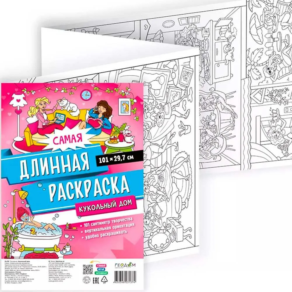 Самая длинная раскраска. Кукольный домВ данный момент этот товар отсутствует в продаже. Возможно, у нас найдется аналогичный или похожий товар здесь. Самая длинная раскраска «Кукольный дом» — это 101 сантиметр творчества! Увлекательный сюжет и большое количество объектов и деталей превратят обычное раскрашивание в весёлый и интересный досуг. А благодаря вертикальной ориентации раскрашивать будет легко и удобно. |