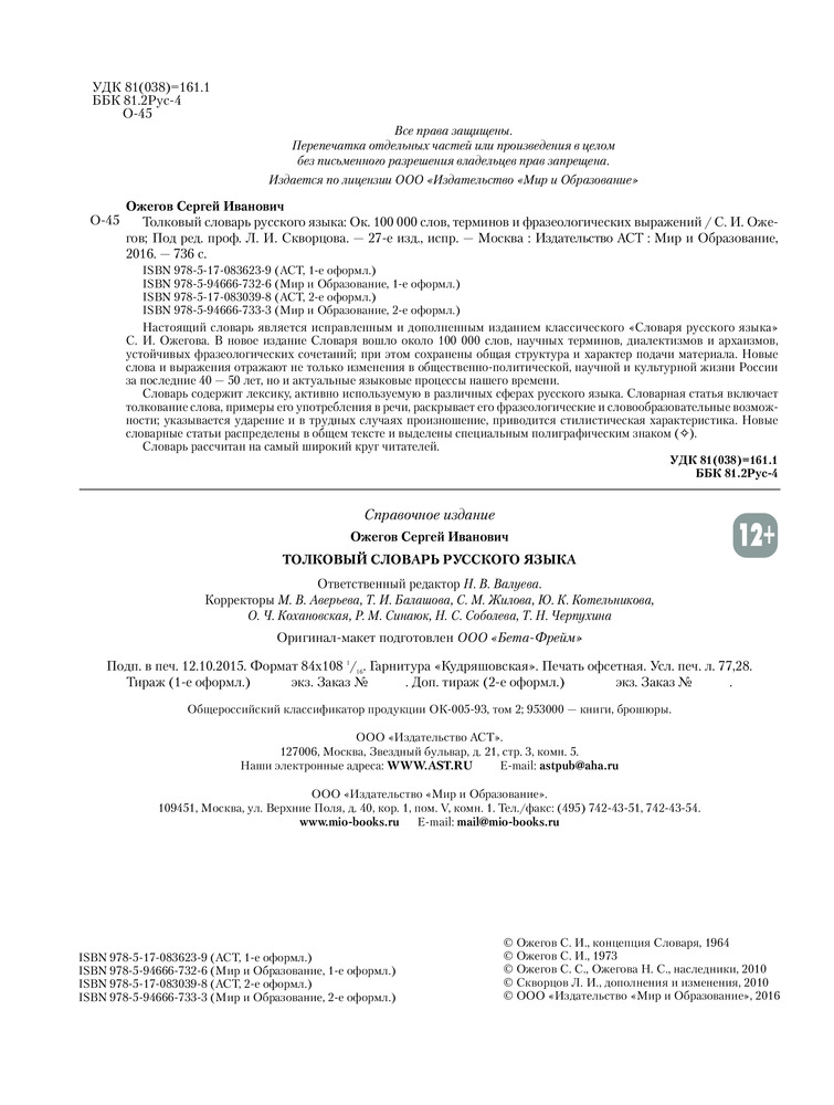 💳 Оплатить за товар можно при получении 🇰🇿 Есть бесплатная доставка по Казахстану от 1 дня 🎁 Копите бонусы с каждой покупки Настоящий словарь является исправленным и дополненным изданием классического «Словаря русского языка» |