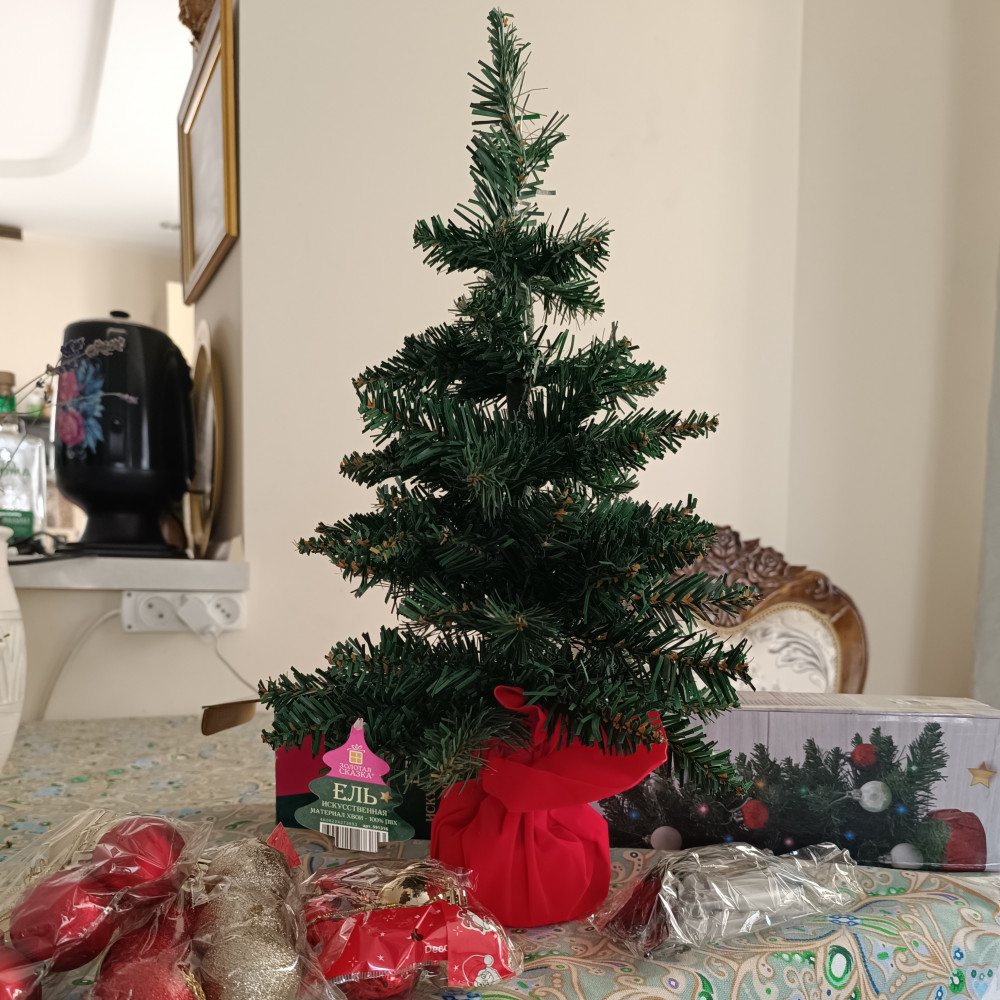 маленькая красивая ёлочка, хорошо будет смотреться в комнате.
